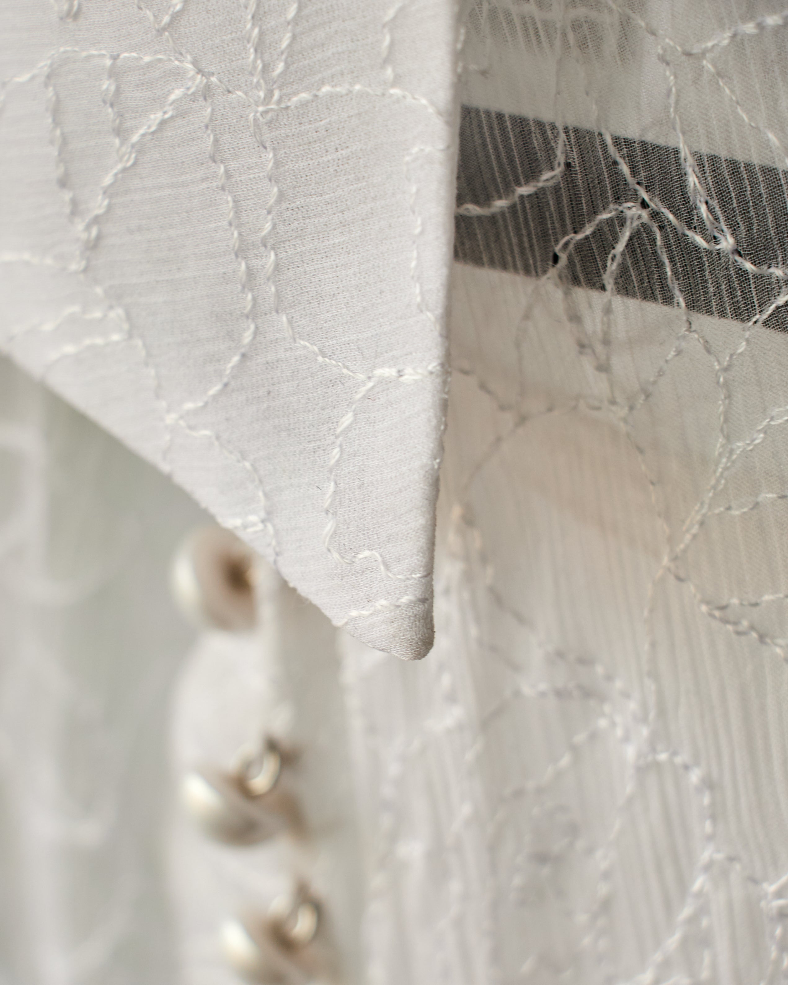 En asociación con nuestra estimada Anteprima en Bogotá, Colombia, nuestra colección Otoño/Invierno 2022 lleva una exploración encantadora al reino del bordado. Presenta paneles cautivadores de motivos florales intrincadamente elaborados, que evocan la esencia de las ricas tradiciones de tapicería de Oriente Medio. La gasa delicada y transparente imagina rosas etéreas y como plumas, que otorgan una dimensión exquisita e ingrávida a cada pieza. Primero dibujamos a mano cada diseño, que luego se traduce en diseños digitales, lo que hace que este bordado sea completamente único.